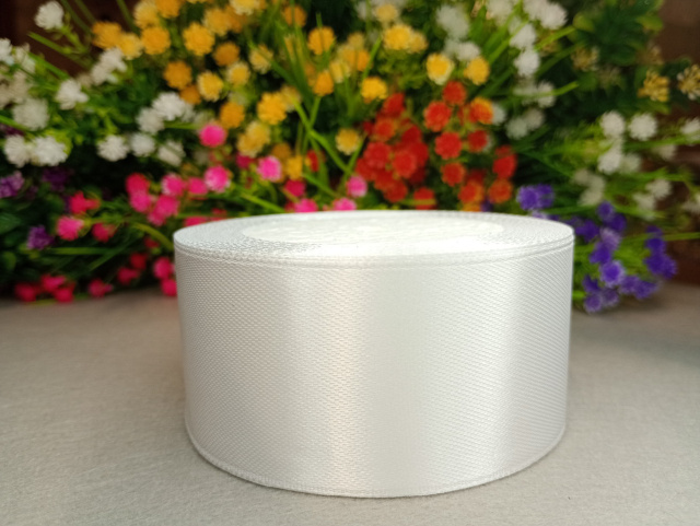 Атласная лента 4 см. Длина рулона 23 м. Цвет молочный