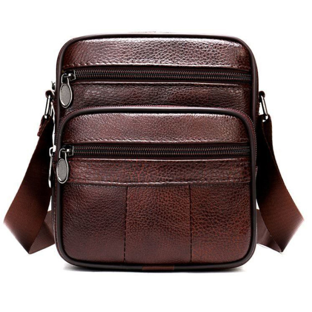 Мужская сумка из натуральной итальянской кожи, коричневая, компактный мессенджер, кроссбоди