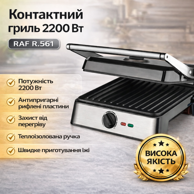 Прижимной контактный электрический гриль RAF R.561 двухсторонний настольный электрогриль 2200 Вт