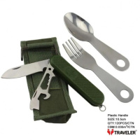 Набор туристический нож, вилка, ложка Traveler 10,5 см K-601