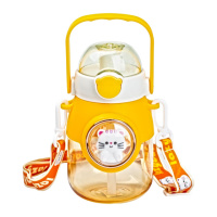 Детская бутылка для воды с трубочкой 820 мл с ремешком желтая