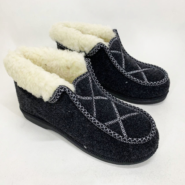 Выполненные в классическом темно-сером цвете, ботинки выглядят опрятно, дополнены декоративной контрастной строчкой. Внутри — мягкий искусственный мех, не только греющий, но и создающий ощущение домашнего уюта. Плоская резиновая подошва гарантирует устойчивость на разных поверхностях, а легкий вес обуви делает ее идеальным выбором для ежедневных дел в городе или за его пределами.