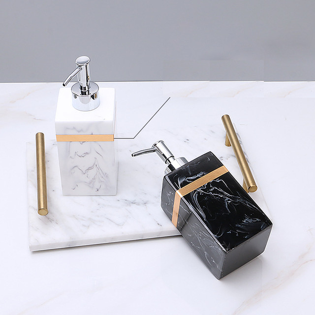 Дозатор для жидкого мыла Мрамор 11763 7х7х16 см 250 мл черный, Одесса