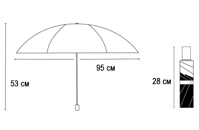 Зонт UV Super Prevent Sun оснащен системой "Полный автомат", ручка зонта выполнена из soft touch покрытия. В развернутом виде диаметр купола составляет 95 см, а длина 53 см, в сложенном состоянии длина составляет всего 28 см.