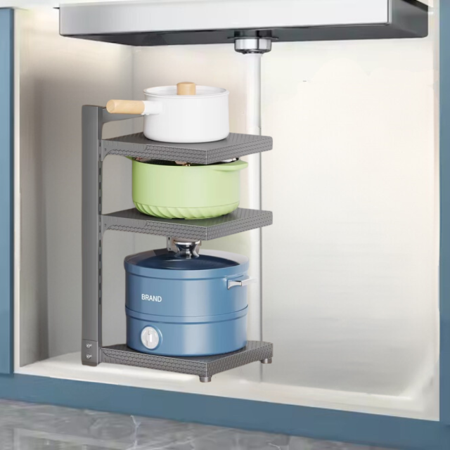 Трехуровневая подставка для кастрюль — это идеальное решение для упорядочивания кухонного пространства. Благодаря компактным размерам 40 х 27 х 20 см она не занимает много места, но обеспечивает максимальную функциональность. Элегантный серый цвет и лаконичный дизайн позволяют ей гармонично вписаться в любой интерьер, добавляя практичности и стиля.