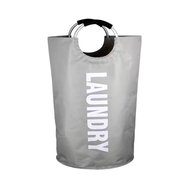 Корзина для белья в ванную, тканевая с алюминиевыми ручками серая, Одеса