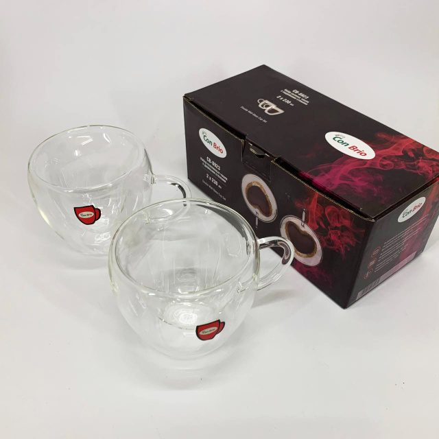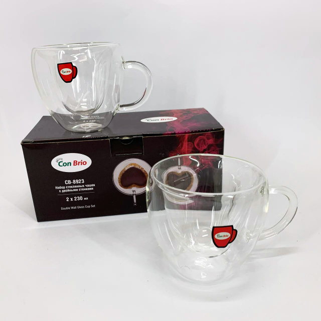 Набор чашек сердце Con Brio CB-8923-2 230 мл, 2 шт, Кружки стеклянные с двойным дном, Чашки для еспресо, Одесса