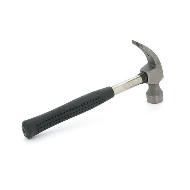 Молоток с гвоздодером 190 мм с кованной, прорезиненной ручкой, черного цвета.