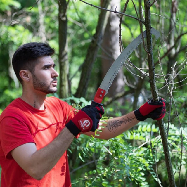 Пилой удобно работать даже одной рукой, а установив ее на штангу высотореза, вы сможете пилить ветки на высоте и в труднодоступных местах.