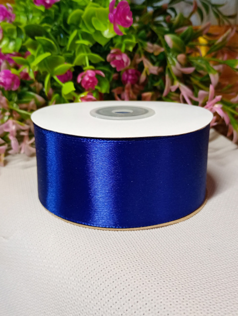 Атласная лента / 4 см / рулон 27 метров / электрик темный