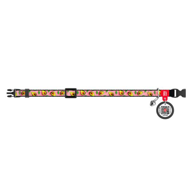 Нашийник для котів нейлоновий WAUDOG Nylon з QR паспортом, малюнок «Авокадо на рожевому», пластиковий фастекс, XS, Ш 10 мм, Дов 20-30 см, Одеса