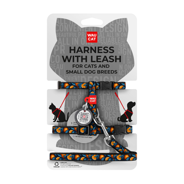 Шлея з повідцем для котів та дрібних порід собак WAUDOG Nylon з QR паспортом, малюнок «Апельсини», пластиковий фастекс, XS, Ш 10 мм, В 25-40 см, С..., Одеса