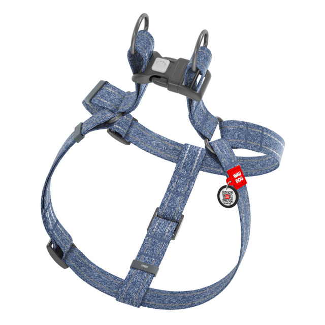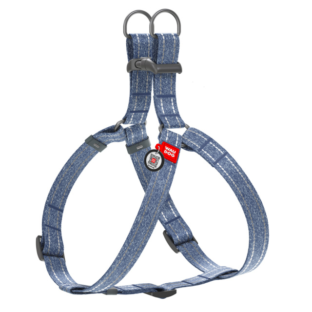 Шлея з відновленої бавовни WAUDOG Re-cotton з QR паспортом, світловідбиваюча, пластиковий фастекс, L, Ш 25 мм, Д 60-85 см синій, Одеса