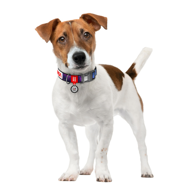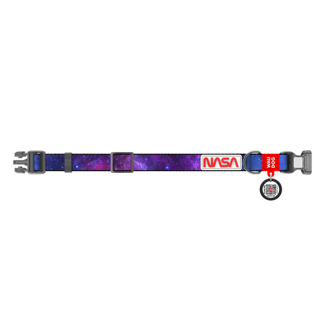 Нашийник для собак нейлоновий WAUDOG Nylon з QR паспортом, малюнок «NASA21», пластиковий фастекс, S, Ш 15 мм, Д 25-35 см, Одеса