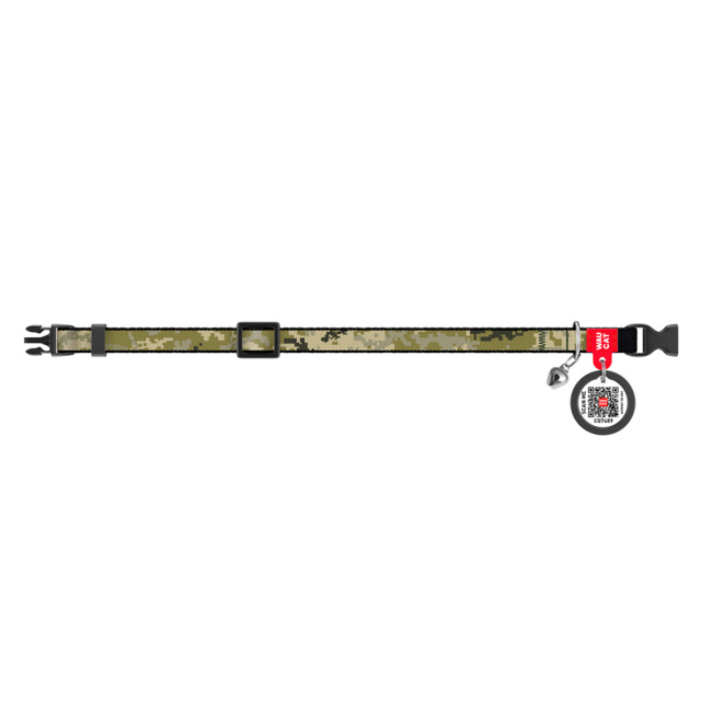 Нашийник для котів нейлоновий WAUCAT Nylon з QR-паспортом, малюнок «Мілітарі», пластиковий фастекс, XS, Ш 10 мм, Дов 20-30 см, Одеса
