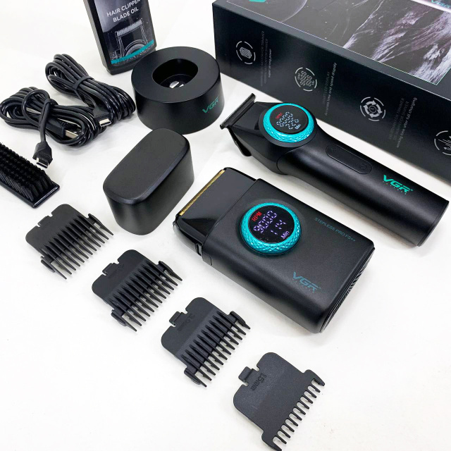 Профессиональный набор VGR V-977 и V-377 обеспечивает точный уход. Оснащенный лезвиями с DLC-покрытием, двойными титановыми фольгами и мощными двигателями (6000-9000 об/мин), он обеспечивает плавную работу. Этот универсальный комбинированный набор имеет 21 уровень скорости, светодиодные дисплеи и функцию работы как от сети, так и от беспроводной. Благодаря долговечным батареям (300 минут для триммера, 140 минут для бритвы) и аксессуарам, входящим в комплект, таким как насадки-гребешки, смазка и USB-зарядная база, он обеспечивает удобство и эффективность в одном портативном пакете. Компания VGR, которой доверяют профессионалы, устанавливает новые стандарты по уходу за собой.