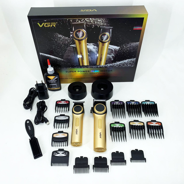 VGR V-001 & V-977 — это премиальный набор для ухода за волосами, включающий высокопроизводительную машинку для стрижки волос и триммер с регулируемой скоростью, керамическими лезвиями и длительным временем работы от аккумулятора. Благодаря 14 насадкам-расческам, светодиодным дисплеям, эргономичному дизайну и двойным опциям зарядки, он обеспечивает точные, профессиональные результаты как для парикмахеров, так и для домашних пользователей.