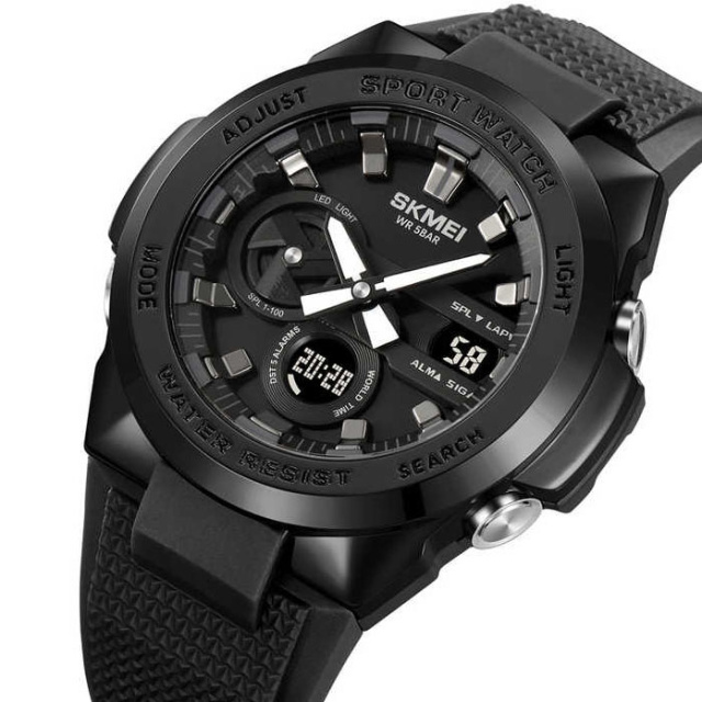 SKMEI 2105BK — это стильные спортивные часы с двойной индикацией, идеально подходящие для активного образа жизни. Сочетание аналоговых стрелок и цифровых дисплеев позволяет удобно отслеживать время в любом формате. Черный корпус с массивным безелем и фактурным ремешком создает мужественный вид, отлично подходящий как для тренировок, так и для ежедневного использования.