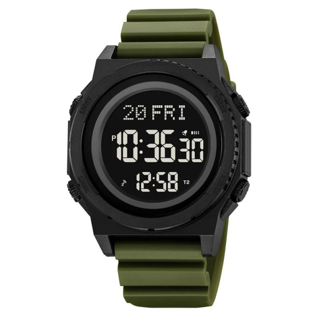 Часы SKMEI 2357AG — это сочетание современного дизайна и многофункциональности для активного образа жизни. Модель выполнена в военном стиле с корпусом черного цвета и зеленым ремешком, что делает ее идеальным выбором для outdoor-активностей, туризма или повседневного использования. Высококонтрастный цифровой дисплей позволяет легко считывать данные даже в сложных условиях освещения.