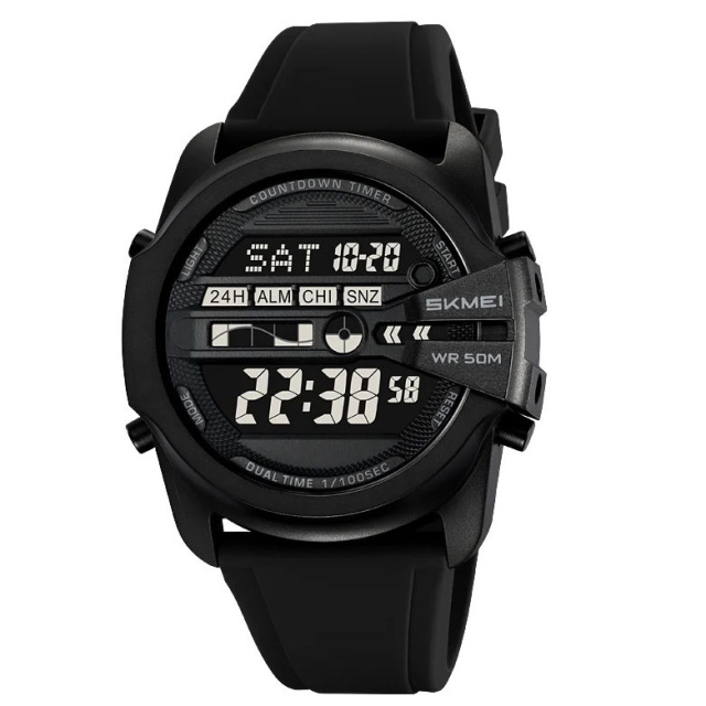 Модель оборудована полным набором функций для активного образа жизни: двойное время, будильник, секундомер, таймер, дата, день недели и подсветка. Уровень водозащиты 50 м позволяет не беспокоиться во время занятий спортом, уличной активности или под дождем. SKMEI 2442BK – это стильная комбинация надежности, техничности и комфорта в одном корпусе.