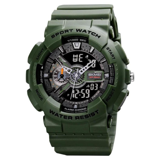 SKMEI 1688AG оснащен всем необходимым для спорта и приключений: секундомером, будильником, таймером, автоматическим календарем, подсветкой и функцией двойного времени. Высокий уровень водозащиты позволяет использовать часы во время дождя, мытья рук или даже во время плавания. Это надежный спутник для тренировок, путешествий и активного образа жизни.