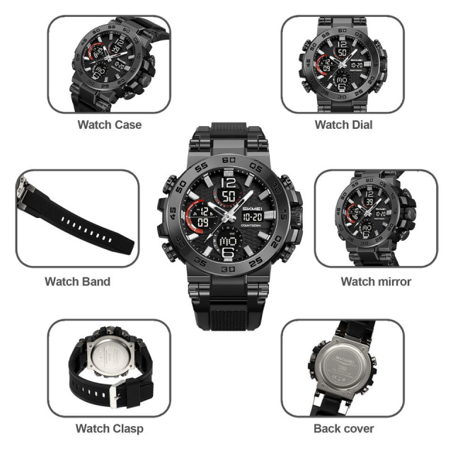 Часы оснащены широким функционалом: таймер обратного отсчета, двойное время, будильник, дата, день недели, секундомер, LED-подсветка — все для максимального удобства и контроля времени в любой ситуации. Прочный корпус и ремешок, водозащита до 50 метров и надежная батарея гарантируют долговечность даже при интенсивном использовании.