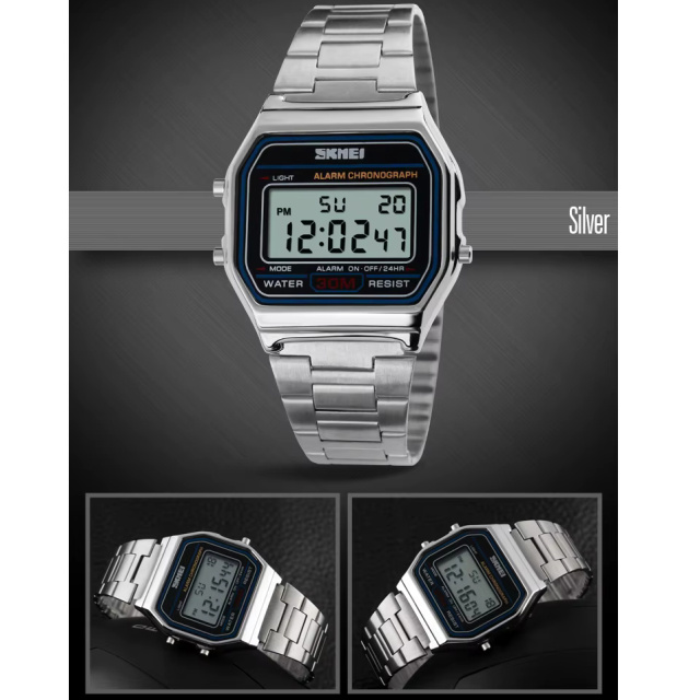 SKMEI 1123SI оснащен всем необходимым для ежедневного использования: цифровой дисплей отображает время, дату, день недели, есть будильник, секундомер и LED-подсветка. Водозащита 30M позволяет не волноваться о брызгах воды, дожде или мытье рук. Эти часы – это идеальное решение для тех, кто ищет функциональный аксессуар с нотками ретро-стиля.