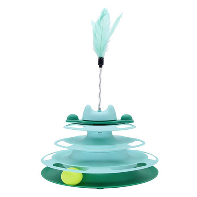 Трек для кошек изготовлен из прочного пластика. В комплекте 3 разноцветных мячика, перо на пружинке.