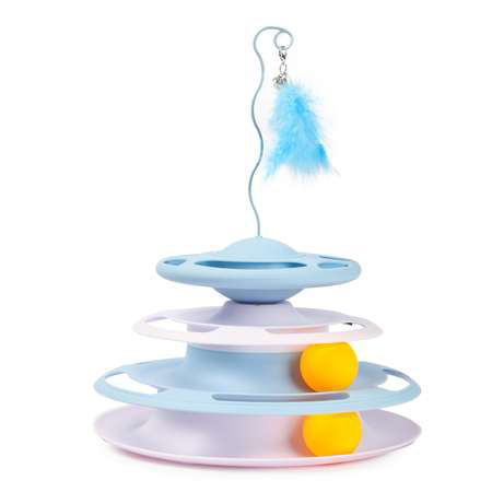Трек для кошек изготовлен из прочного пластика. В комплекте 3 разноцветных мячика, перо на пружинке.