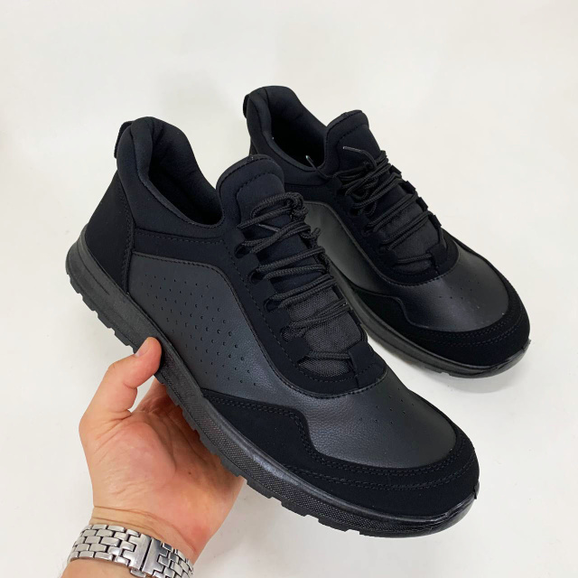 Утепленные мужские кроссовки — это идеальное решение для холодного сезона, когда нужна обувь, сочетающая удобство, тепло и стиль. Модель выполнена в универсальном черном цвете из комбинированных материалов: матовой экокожи, текстиля и вставок из замши. Аккуратная перфорация по бокам придает эстетику и улучшает вентиляцию.