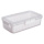 Контейнер изготовлен из прозрачного пищевого пластика, что позволяет легко контролировать содержимое без открывания. Герметичная крышка плотно фиксируется с помощью четырех боковых замков и оснащена бежевыми ручками для удобного открывания и переноски. Внутри предусмотрена отдельная подставка на дне, которая способствует циркуляции воздуха и отводу влаги - это продлевает свежесть хранимых продуктов. Основные характеристики: Размер: 31х24х7 см; Внутренний размер: 28.5х21.5х5 см; Объем: 2.5 л; Материал: пластик. Этот многофункциональный контейнер подходит для хранения овощей, фруктов, зелени, остатков блюд, а также сыпучих продуктов. Благодаря герметичности контейнер сохраняет аромат и структуру пищи, предотвращая проникновение посторонних запахов. Его удобно использовать в холодильнике, шкафу или брать с собой в дорогу. Материал не впитывает запахов, легко моется вручную или в посудомоечной машине. Продуманная форма позволяет компактно размещать несколько контейнеров друг на друге, оптимизируя пространство хранения.