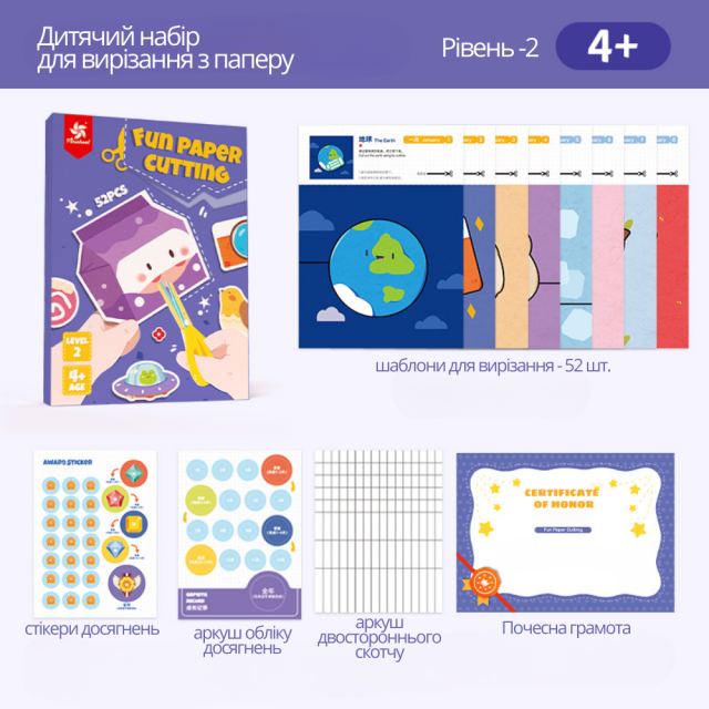 Альбом-книга для аппликации с шаблонами для вырезания из бумаги для развития мелкой моторики рук.Уровень 2, Одеса