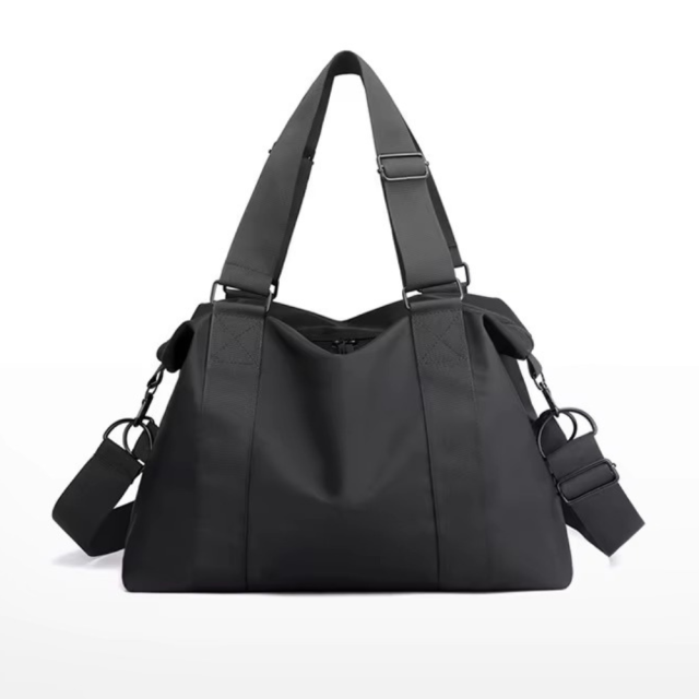 Стильная и практичная сумка из прочной оксфордской ткани в черном цвете — идеальный вариант для тренировок, поездок и повседневного использования. Компактный размер (32x13x25 см) делает её удобной для ношения в руке или на плече благодаря длинным ручкам и регулируемому ремню. Лаконичный дизайн дополнен внешним карманом на молнии для быстрого доступа к мелочам, а плотный водоотталкивающий материал надежно защищает содержимое от влаги и загрязнений.