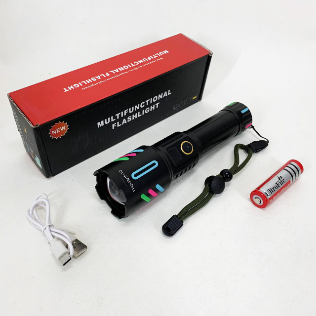 Мощный ручной фонарь с флуоресцентным покрытием и оптическим зумом. Работает от аккумулятора 1×18650 и имеет зарядку через USB. Имеет пять режимов работы: от яркого света до стробоскопа и SOS. Индикация заряда и пыле- и влагозащищенный корпус для надежной работы в любых условиях.