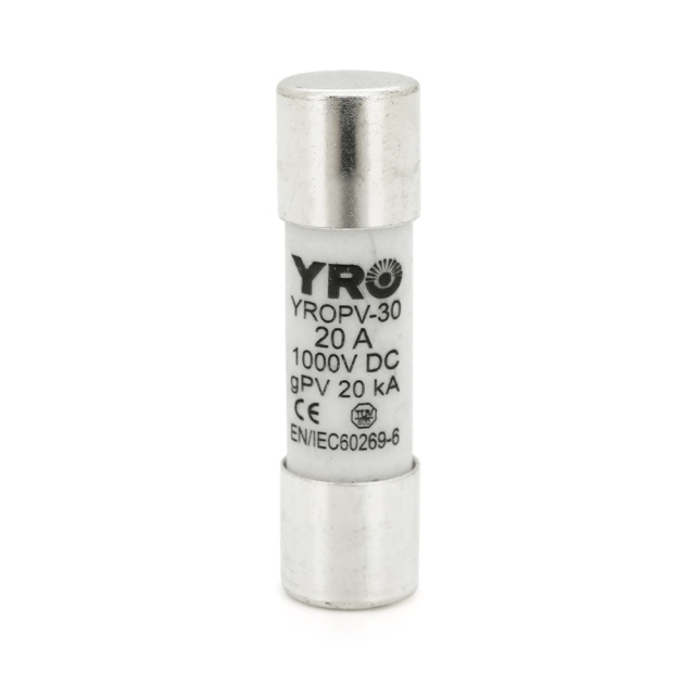 Плавкий предохранитель YROPV-30 20A предназначен для защиты от перегрузок и коротких замыканий в электрических цепях. Он имеет номинальный ток 20A и номинальное постоянное напряжение 1000Vdc. Размеры предохранителя составляют 10×38mm.