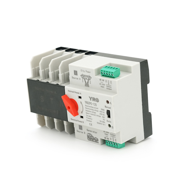 Автоматический переключатель ввода резерва (АВР) YRO YRQ2PC-125 - 4-х полюсный (3 фазы и ноль) автоматический непрерывный переключатель ввода резерва (АВР) на величину тока до 125А.