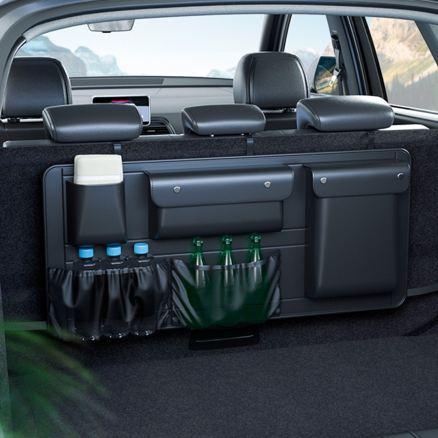Автомобильный органайзер CABULE для багажника — это практичное организационное решение для оптимизации пространства в грузовом отделении автомобиля. Изделие размером 90×45 см изготовлено из качественного кожзаменителя и оснащено пятью функциональными отделениями различного размера. Органайзер крепится к спинкам задних сидений с помощью прочных регулируемых ремней, обеспечивая надежную фиксацию даже при резких маневрах.