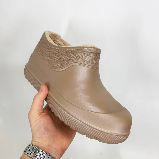 Элегантный бежевый цвет и декоративная текстура в верхней части придают изделию привлекательность, делая его актуальным не только для дома или огорода, но и для прогулок в городе. Галоши легко обуваются, а небольшая высота модели делает их удобными для ежедневного использования.