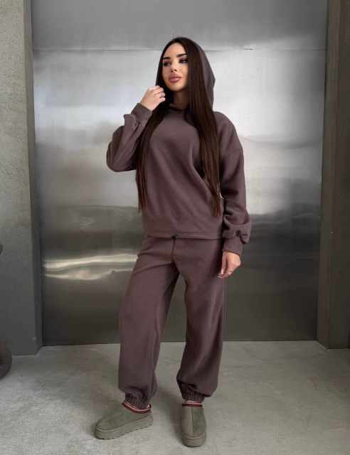 Стильний жіночий спортивний костюм із флісу — надзвичайно м’який, теплий і комфортний варіант для прохолодних днів. Кофта оснащена зручною затяжкою спереду, що дозволяє регулювати посадку та створювати додатковий акцент у силуеті. Фліс приємний до тіла, добре зберігає тепло та забезпечує максимальний комфорт у щоденному носінні.