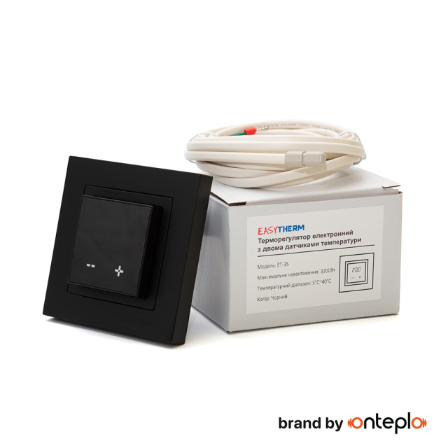Електронний сенсорний терморегулятор ET-35 чорний з мінімалістичним дизайном.