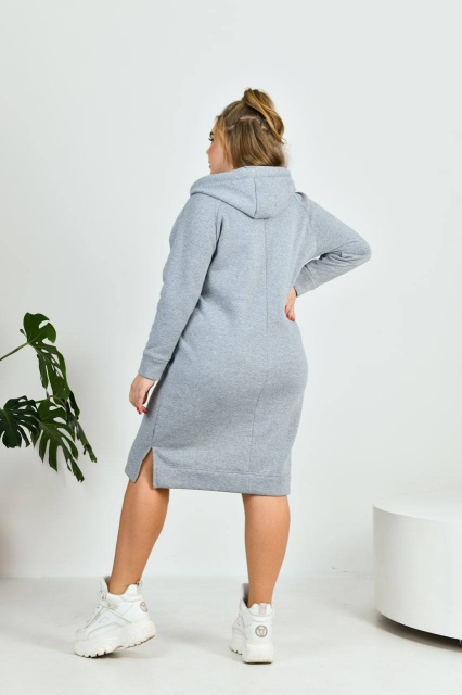 Тепла та зручна сукня у спортивному стилі із м'якого теплого трикотажу. Сукня з капюшоном, в куліску протягнуто шнурок із основного матеріалу.
