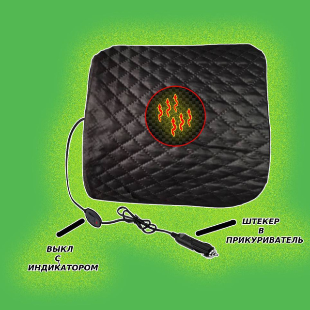 Накидка оборудована кабелем со штекером для гнезда прикуривателя на конце. Выключатель с индикатором