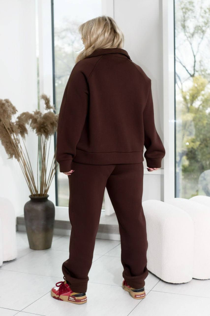Теплий спортивний костюм із трьохнитки на флісі, який не кошлатиться, створений для максимального комфорту та затишку. Худі із капюшоном має дві кнопки на горловині, що надійно захищають від холоду та забезпечують додаткове тепло, прикриваючи шию.