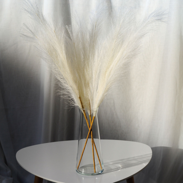 Искусственный пампас белого цвета имеет легкую, пушистую структуру и изящный силуэт, что создает ощущение воздушности и пространства. Длинные мягкие волокна равномерно раскрываются по всей длине, формируя элегантный декоративный упор. Нейтральный белый оттенок гармонично сочетается с любой гаммой интерьера и подчеркивает современный стиль оформления.