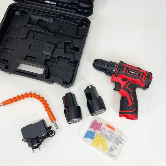 Идеальный инструмент для домашнего мастерства и профессиональных задач – аккумуляторный шуруповерт KRAFFTEC мощностью 24 В с набором насадок.