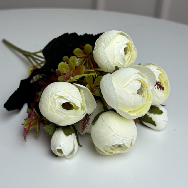 Букет Ранункулюсов искусственный, 30 см, 5 стеблей, 8 цветков/микс (2 букета в уп.). Цвет: белый, Одесса