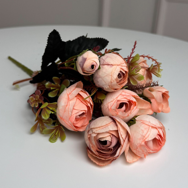 Букет Ранункулюсов искусственный, 30 см, 5 стеблей, 8 цветков/микс (2 букета в уп.). Цвет: персиковый, Одесса