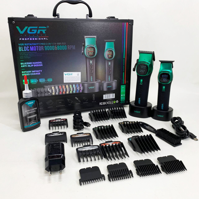 Набор VGR 2 в 1 V-885 S2 GREEN сочетает в себе мощность, удобство и универсальность, подходя как для домашних пользователей, так и для профессиональных парикмахеров. Беспроводное использование обеспечивает свободу движений и комфорт в работе, а продуманные аккумуляторы позволяют использовать устройства без частой подзарядки.