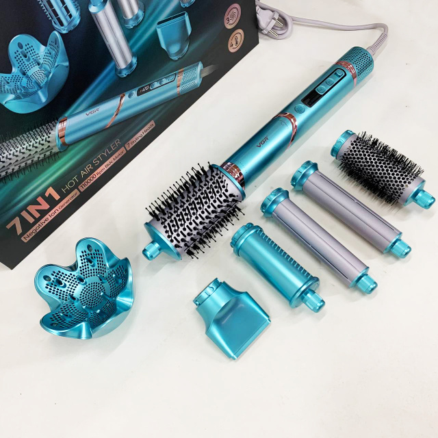 Среди преимуществ этого стайлера выделяются 7 насадок, которые позволяют экспериментировать с разными стилями волос. Прибор оснащен ионизацией и керамическим покрытием, что помогает уменьшить статическое электричество и придает гладкость вашим локонам.