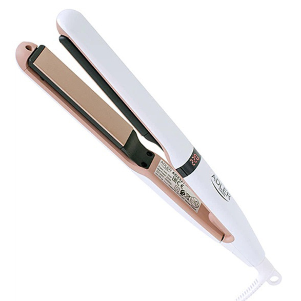 Выпрямитель Adler AD-2321 мощностью 45 Вт с керамическими пластинами и регулировкой температуры. Эффективно выпрямляет торчащие и вьющиеся